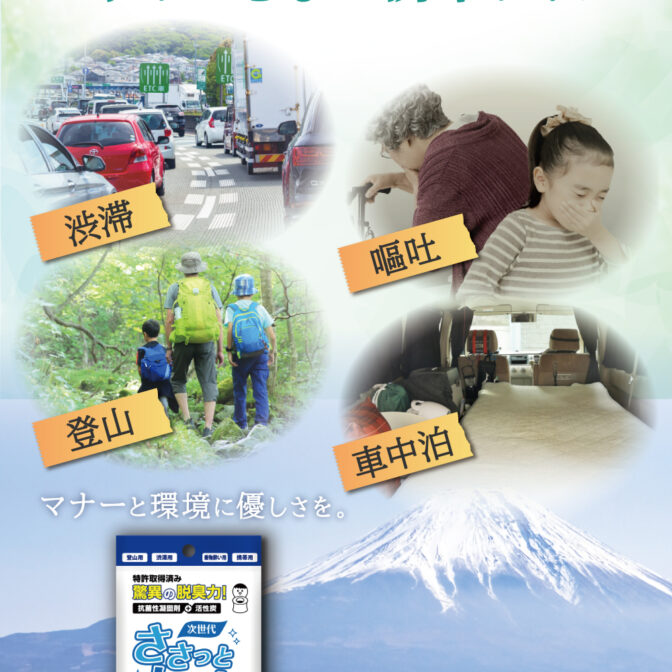 登山時のトイレ、車内でのトイレや急な嘔吐に対応します。